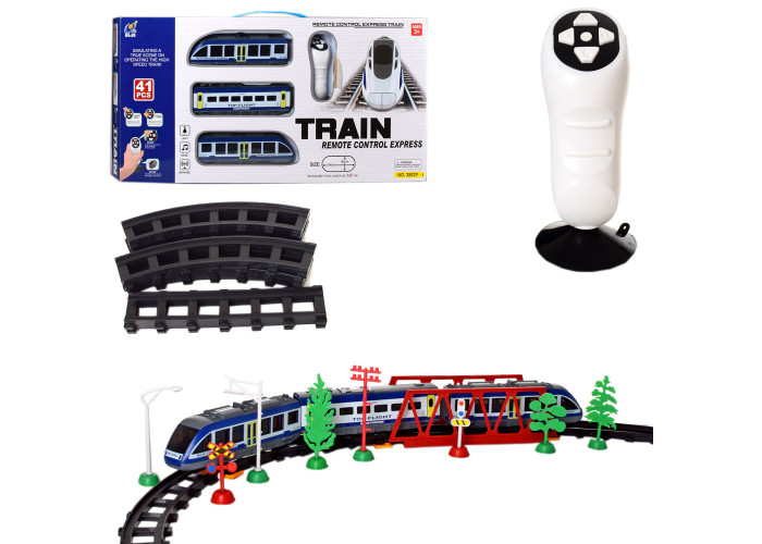 Дитяча залізниця Remote Control Express зі світлом і ручкою керування на 41 деталь У комплекті потяг із двома локомотивами та вагоном. Керування здійснюється за допомогою ручки, що дає змогу легко спрямовувати поїзд за маршрутом. Набір містить 41 деталь і виготовлений із безпечного пластику. Цей набір чудово підходить для розвитку уяви, дрібної моторики та буде чудовим подарунком для дітей, які люблять залізниці.