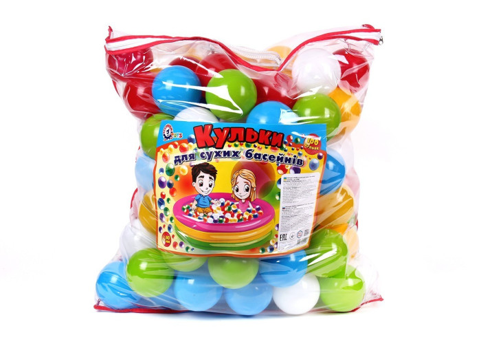 У комплекті: кульки різнокольорові (діаметр 80 мм) 100 шт.