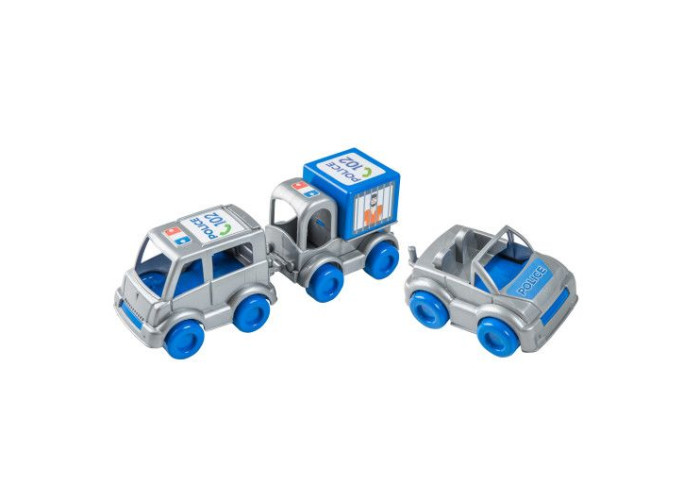До набору "Kid cars" поліцейський входитять: бус, джип, та контейнер.