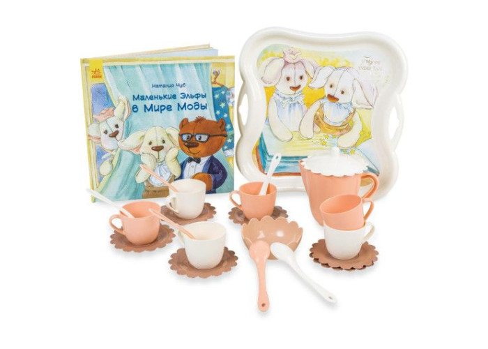 Набір допоможе маленьким господаркам вивчити основні правила етикету і сервіровки столу. Стильні та зручні тарілки з чашками і ложками, піднос, цукорниця і чайник дозволять організувати прекрасне чаювання.