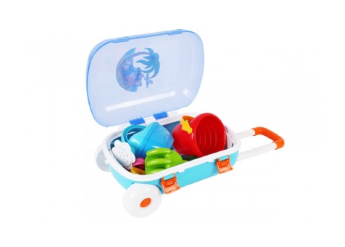 Мегакрутий «Набір для гри з піском ТехноК» у яскравій валізі. У наборі відерко, лійка, лопатка, грабельки та 6 «фруктових» формочок для піску. Всі іграшки зручно розмістились у валізі з прозорою кришкою, яку захочеться взяти з собою на прогулянку.