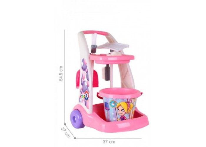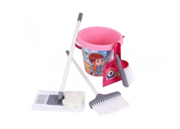 У «Наборі для прибирання ТехноК» є яскраве відерко з барвистою наліпкою, виконаною за допомогою технології IML, швабра, мітла, щіточка та совок. Всі елементи можна розмістити на возику та перевозити з собою. На нижній поличці візка є спеціальне місце для відерка, а на верхній поличці з трьома гачками зручно розмістити дрібні елементи набору. З таким возиком все необхідне завжди буде під рукою. Візком можна користуватися як вдома так і на ігровій площадці. А як використати візок на вулиці - малюк з друзями вирішить сам, адже перевезти на цьому візку можна багато.