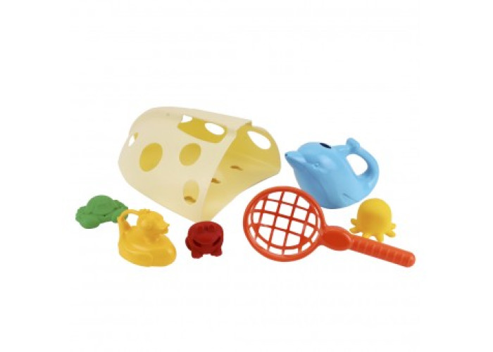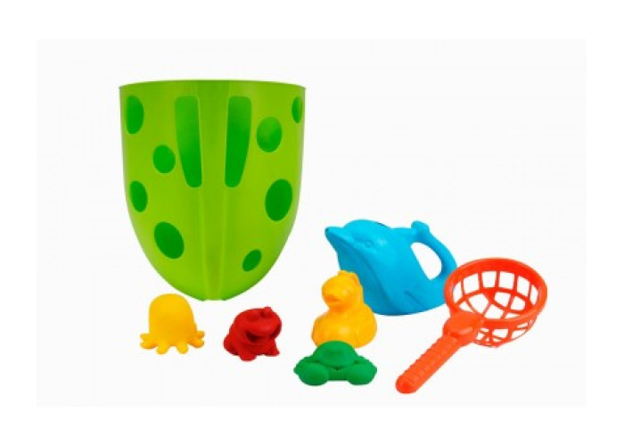 У "Наборі для ванної ТехноК" – різноманітні цікаві іграшки для купання та корисного дозвілля. Тут і м'які резинові звірятя, качечка, підсак для риболовлі та лійка у формі дельфінчика.