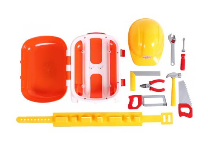 Яскрава, функціональна валіза з набором інструментів готова та чекає на виконання своїх важливих завдань у захопливих іграх! «Ремонтувати» чи «будувати»? Малюк вирішить сам! Він матиме необхідні для цього іграшкові інструменти: молоток, плоскогубці, пилку по металу та пилку по дереву, кутник, розвідний ключ, викрутки з двома насадками — фігурною і плоскою.