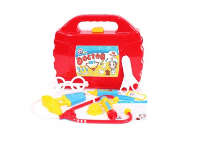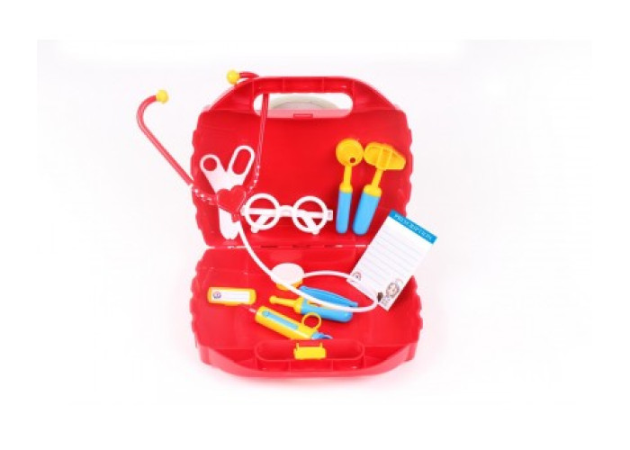Психологи стверджують, що діти, які граються в лікаря, набагато спокійніше поводять себе в кабінеті справжнього лікаря. В комплекті «Маленький лікар ТехноК» - 10 найбільш популярних інструментів серед яких: стетоскоп, шприц, термометр, отоскоп, ножиці та інші. Малюкам також сподобається бейджик та бланк рецепту, а окуляри зроблять малюка схожим на справжнього лікаря, який маючи такий набір інструментів, без сумніву, вилікує свого улюбленого ведмедика від будь-якої хвороби.