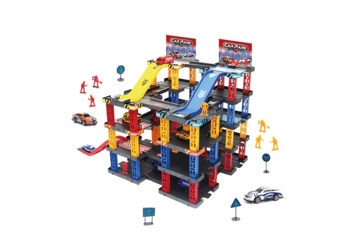 Гоночна траса складається з 111 міцних пластикових елементів, які легко поєднуються в різноманітні конфігурації, включаючи вертикальні гірки та круті віражі. Комплекс включає багаторівневий паркінг та зону технічного обслуговування, що дозволяє створювати реалістичні ігрові сценарії. Всі деталі виконані із безпечного, зносостійкого пластику.