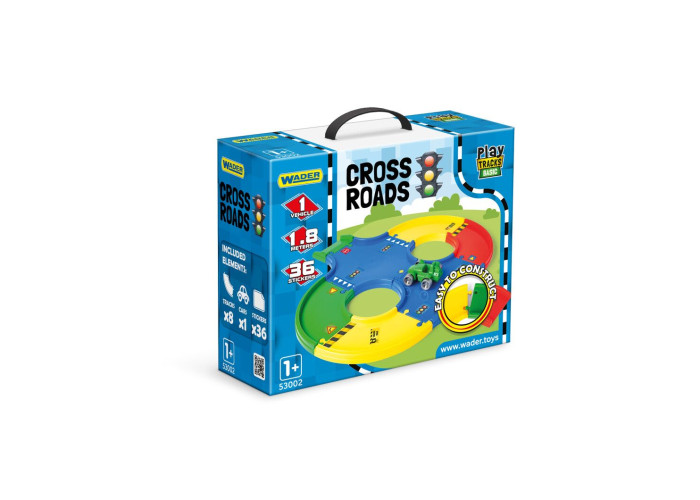 Набір Перехрестя із серії Play Tracks Basic — ідеальна пропозиція для тих, хто любить грати з автомобільними трасами. Це сучасна, легка і проста в збірці конструкція, що складається з різнокольорових елементів доріг загальною довжиною 1,8 м, які при з’єднанні створюють гоночну трасу. У набір входить 1 машинка Kid Cars і набір наклейок. Універсальність окремих елементів дозволяє створювати багато ігрових сценаріїв, стимулює дитячу уяву та надихає на творче мислення. Ігри з набором серії Play Tracks Basic сприяють розвитку моторики найменших дітей, особливо дрібної моторики, ручних здібностей, точності рухів і координації очей і рук, а також вчать логічного мислення і орієнтації в просторі. Кольорові елементи дозволяють вивчити і закріпити назви основних кольорів. Всі елементи виготовлені з якісного, безпечного для дітей і міцного матеріалу, завдяки чому зберігають форму і колір протягом багатьох років. Елементи набору сумісні з іншими наборами трас, доріг і гаражів Wader. Іграшка упакована в естетичну коробку з ручкою, ідеально підходить для подарунка.