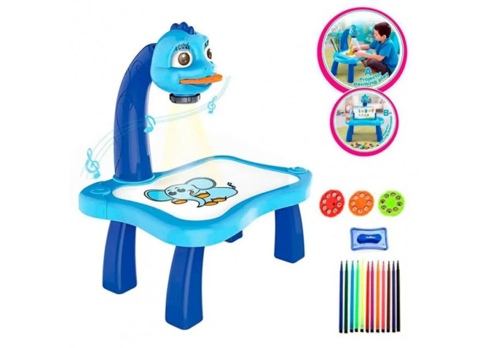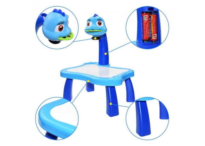 Малювання — цікаве заняття для дітей різного віку. Створювати образи подобається кожному, але не кожна дитина вміє це робити. А коли щось не виходить, то й далі не дуже хочеться. Діти в цьому плані легко вразливі, їм необхідно, щоби все виходило. Представляємо вам помічника у малюванні — дитячий проектор зі столиком Projector Painting. З його допомогою будь-яка дитина зможе зобразити тварину або машинку. Дитячий проектор для малювання зі столиком — це технічно нескладний пристрій, що є невеликою міні-лампою, що проеціює світло на пластикову дошку. У комплекті до проектора поставляються три слайди, на яких є по 8 картинок. Кожну з цих картинок можна спроектувати на столик, обвести, а потім розфарбувати, тим самим отримавши свою веселу картинку. Projector Painting допомагає дітям дошкільного та молодшого шкільного віку розвивати дрібну моторику, творчо висловлюватись, фантазувати. З ним у кожної дитини наприкінці буде чудовий результат. Дітям дуже подобається процес змальовування. Можна налаштувати розмір зображення, повернувши лампу, а також розмити або зробити зображення чіткішим. Бонусом під час роботи з проектором звучить весела музика. Проектор складається зі столика з лампою та лупою. У верхню частину вставляються диски з картинками, включається світло, і дитина може наводити малюнок на аркуші під проектором.