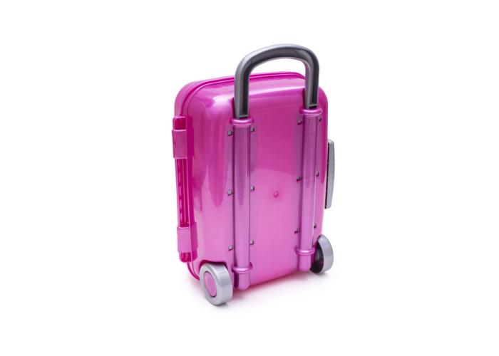 Привабливий дизайн поєднується з набором елементів, практично повністю схожих на звичайні вироби для тат і мам. Точний до дрібних деталей корпус з кришкою, що відкидається, надійний замок типу засувки дозволяють дитині відчути себе справжнім мандрівником. Для зручності перенесення похідної валізи передбачена бічна ручка, а пересування легко здійснити за рахунок коліщаток, що вільно обертаються.