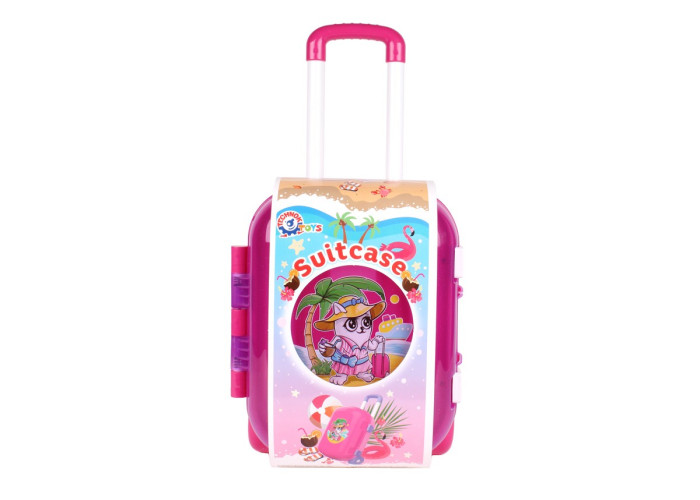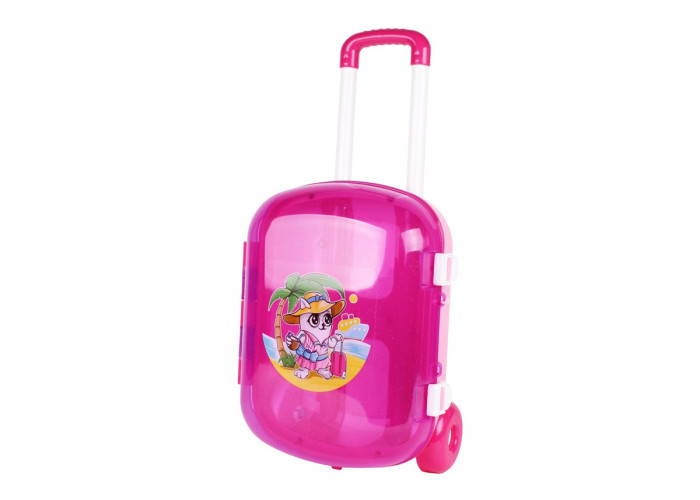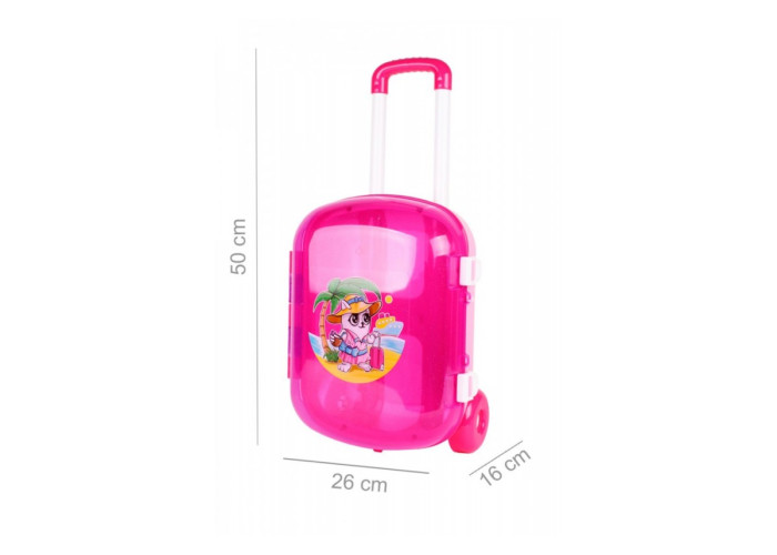 Валіза комфортна для дітей різного віку та зросту завдяки ручці, що регулюється. Відкрита кришка валізи фіксується у кількох положеннях. Тому дитина зможе легко складати та виймати речі з неї. А надійні защіпки дозволяють закривати кришку і зберігати іграшки всередині валізи. Крім того великі, міцні колеса допомагають дитині вільно перевозити валізу.