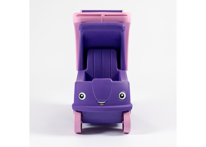 Іграшка являє собою візок-каталку, зроблений у вигляді милого автомобіля, який складається з кабіни та кошика для покупок. Перед каталки прикрашений кумедними очима та посмішкою, що з першого погляду привабить дитину.
