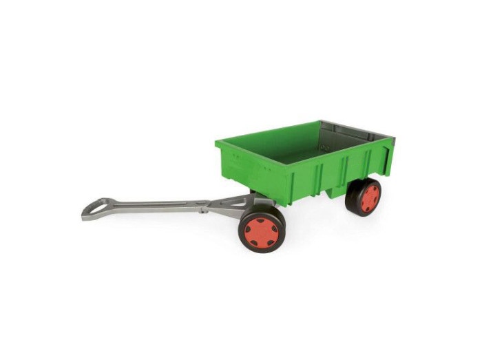 Візок - причіп Фермер із серії Гігант – чудова іграшка для найменших дітей. Може використовуватись як причіп для вантажівки і трактора Гігант або, завдяки ручці, що йде у комплекті, як самостійна іграшка-візок. Зелений фермерський візок, виготовлений з високоякісного матеріалу, стійкого до погодних умов. Завдяки цьому діти можуть ним гратись як в домі, так і на дворі. Візок витримує вагу до 60 кг. Задня стінка візка відкидається для максимально зручного поводження з вантажем. Довгу ручку для перевезення візка можна приєднувати і від'єднувати. Діти обожнюють перевозити в ньому свої іграшки, пісок, листочки. Візок також дає можливість залучити найменших діток до допомоги у домашніх роботах - перевезення прання, роботи в саду, тощо. Іграшка створює додаткові можливості для рухової активності, підтримує розвиток дитини, а також спонукає її до креативності.
