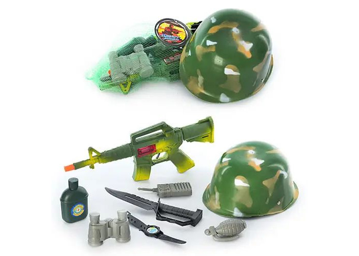 Ігровий військовий набір це практично повне екіпірування сучасного солдата-професіонала. У комплекті є все, щоб малюк міг себе відчути справжнім бійцем спецназу, від автомата і каски до командирських команд. годин. За зовсім невеликі гроші Ви отримуєте прості, але добротні іграшки, здатні зробити дитину щасливою. Іграшки виконані з якісного пластику та рекомендовані для дітей старше 3-х років.