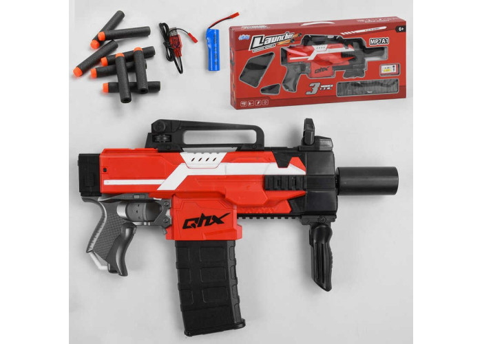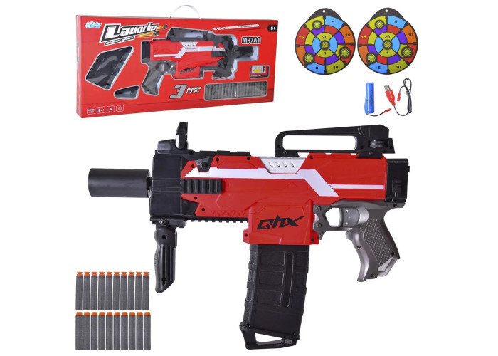 Це потужна іграшка для справжніх героїв, які не бояться великих і реалістичних конструкцій, що здатні за один постріл - вразити ворога. Автомат виготовлений у сигнально червоному кольорі з чорними, сірими і білими вставками, що створюють особливий сучасний дизайн, круту зброю. Автомат має високу пускову потужність за рахунок акумулятора 3.7 V.