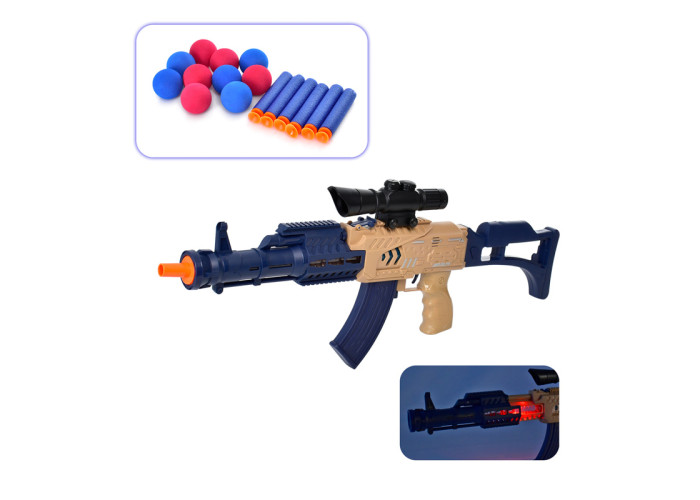 З цим бластером задоволення та тривалість спільної гри забезпечено! Бластер стане не лише ефектним, а й ефективним інструментом в ігрових битвах. За допомогою автомата ваш хлопчик зможе навчитися точно влучати в ціль. Він покращить свою влучність та координацію. Бластер виготовлений із міцного пластику насичених кольорів. Прекрасний подарунок активним дітям, - кулемет, стріляє м'якими кулями, що підійде як для гри вдома, так і на вулиці.