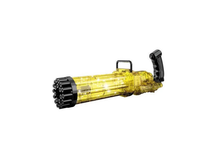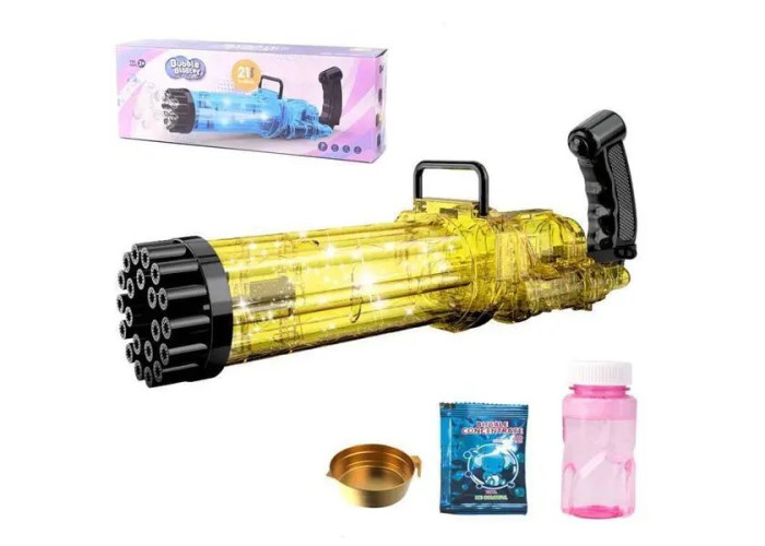 Багато дорослих із захопленням і радістю згадують, як у дитинстві видавали мильні бульбашки і які змагання при цьому влаштовували. І сьогодні дітям дуже цікаво спостерігати, як з'являються ці дивовижні та дуже красиві мильні кульки, що переливаються на сонці всіма кольорами веселки і слухняно йдуть за найменшими поривами вітру. Якщо хочете побачити щасливі і радісні оченята улюбленого трирічного карапуза, то запропонуйте йому приголомшливий сюрприз - генератор мильних бульбашок Кулемет - бульбашкомет. Зовні іграшка нагадує реальний кулемет і має 21 отвір на дулі для видування бульбашок. Ергономічна рукоятка зручно розміщується у маленьких ладонях. Щоб почати користуватися, достатньо виконати 3 прості дії: