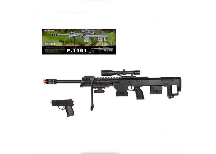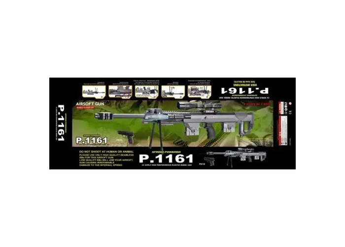 Снайперська гвинтівка P.1161 імітує реальну вогнепальну зброю та виконана в масштабі 1:1. Пластиковий корпус має високу деталізацію і точно передає конструктивні особливості гвинтівки. Потужний ударно-пружинний механізм вистрілює пластиковими кулями з діаметром 6мм. Режим стрільби одиночний, і після пострілу необхідно пересмикнути затвор.