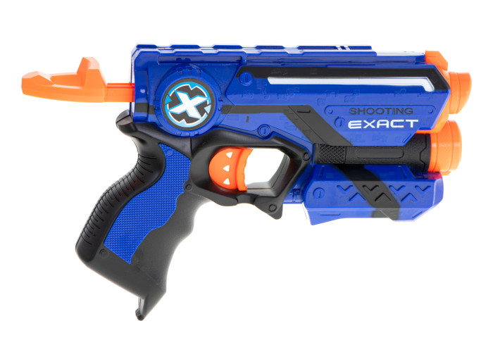 Підставки для мішені можуть бути і власниками для стріл. Стріли, що входять до комплекту - одного кольору та з присосками. Нижче дула розташовані два відсіки для запасних стріл. Зарядивши стрілу, вам необхідно лише відвести назад, до клацання, пластиковий важіль з кільцем на кінці та бластер готовий до стрільби!