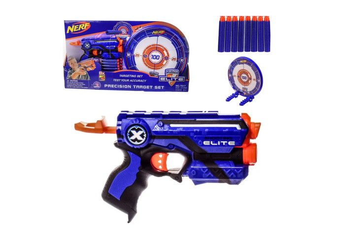 У наборі є також 1 міцна мішень та 8 м'яких безпечних патронів.