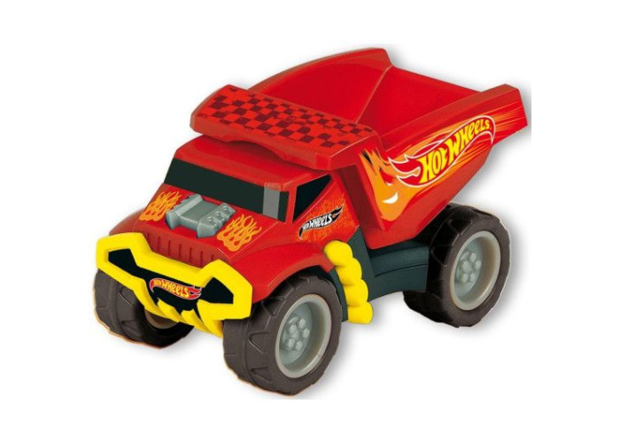Самоскид Hot Wheels виконаний в оригінальному гоночному червоно-жовтому дизайні.