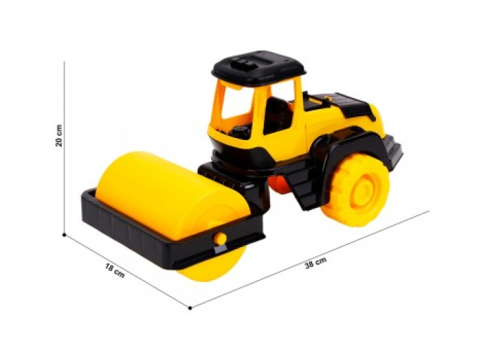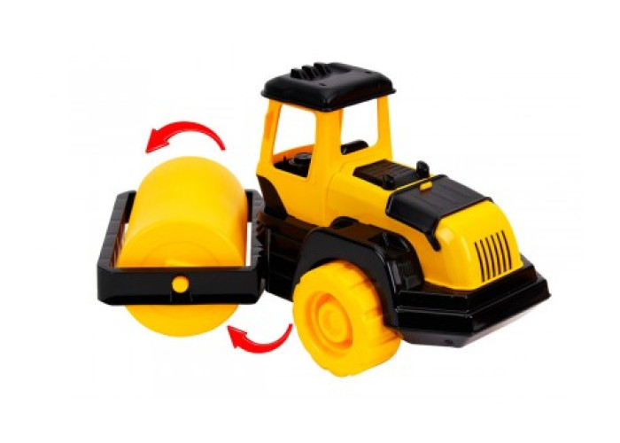 З катком малюк відчує себе справжнім будівельником. Його собливість - рухоме (шарнірне) з'єднання кабіни з моторним відсіком та робочою частиною (кріплення катка-вальця). Як і сучасні машини такого типу, каток може трамбувати асфальт не тільки на прямих ділянках автошляхів, а й на з'їздах з автобанів, заїздах у двори та працювати на невеликих майданчиках. Великі міцні колеса дозволяють машині долати різні перешкоди. У комфортній відкритій кабіні зручно розміститься улюблена іграшка. Кришка моторного відсіку відкривається і малюк зможе оглянути двигун та своєчасно провести обслуговування чи ремонт.