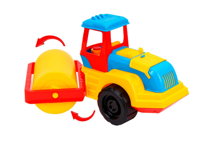 Новий іграшковий трактор від ТехноК - це великий каток для утрамбування асфальту, ґрунту та піску. З ним можна придумати безліч сюжетно-рольових ігор вдома та у дворі. Трактор нагоді для будівництва доріг, мостів та автостоянок. З ковзанкою малюк відчує себе справжнім будівельником. Особливість нового трактора - рухоме (шарнірне) з'єднання кабіни з моторним відсіком та робочою частиною (кріплення катка-вальця). Як і в сучасних машинах такого типу, наша ковзанка може трамбувати асфальт не тільки на прямих ділянках автошляхів, а й на з'їздах з автобанів, заїздах у двори та працювати на невеликих майданчиках. Великі міцні колеса дозволяють машині долати різні перешкоди. У комфортній відкритій кабіні зручно розміститься улюблена іграшка. Кришка моторного відсіку відкривається і малюк зможе оглянути двигун та своєчасно провести обслуговування чи ремонт.