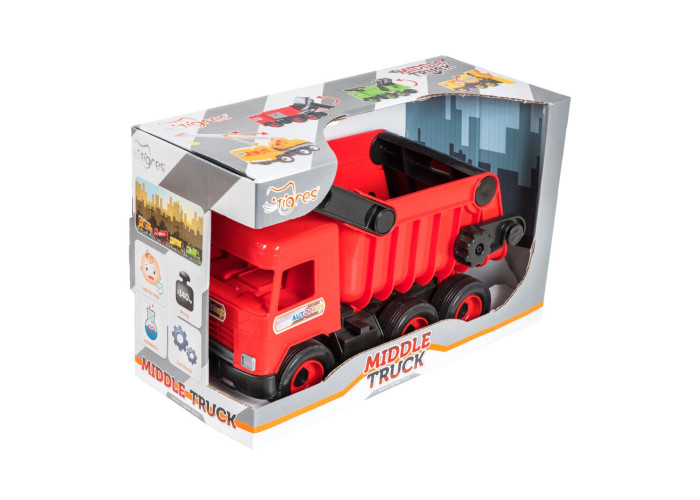 Авто "Middle truck" самоскид в коробці - тепер в нових трендових кольорах! Це ідеальна машина для маленького будівельника. Рухомі елементи надають цій яскравій і привабливій іграшці особливої реалістичності і функціональності.