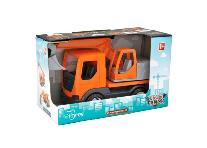 Жодне будівництво не обійдеться без екскаватора-навантажувача. Вирити землю під фундамент, перевантажити будматеріали, щебінь - це тільки частина роботи, яку виконують ці машини на будмайданчику. Навантажувач із серії Tech Truck - легкий, повороткий і витривалий. Іграшка має рухому основу з кабіною оператора, а також рухому стрілу і ківш. Підпори до транспортного засобу стабілізують і не дають перекинутись навантажувачу в процесі роботи.