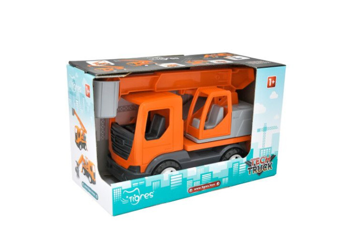 Без цього транспортного засобу робота на висоті була б неможлива, завдяки своїй підйомній люльці його використовуваний у багатьох галузях - будівельній, енергетичній, ремонтній, пожежній. Підйомник з серії Tech Truck -це маневрений підйомний пристрій, що вирізняється міцністю і привабливим дизайном. Іграшка має рухому основу з кабіною оператора, а також рухому висувну стрілу з люлькою на кінці. Підпори до транспортного засобу стабілізують і не дають перекинутись підйомнику в процесі роботи.
