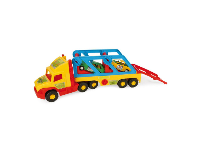 Ця високоміцна іграшкова машина містить безліч рухомих елементів, завдяки яким гра стає ще цікавішою. Вона обладнана системою завантаження / розвантаження автомобілів, а також висувною направляючою.