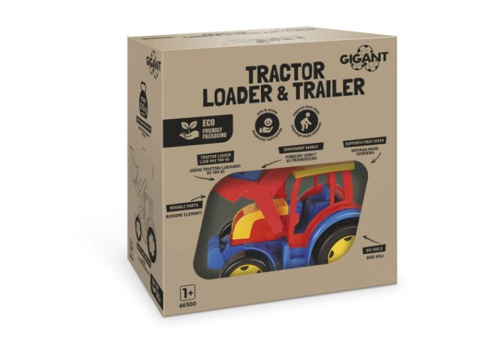 Великий іграшковий трактор "Гігант" з причіпом та ковшем - чудова іграшка, елементи якої можна використовувати як разом, так і окремо. Це може бути трактор з причепом-візком, окремо трактор і окремо візок. Завдяки великій вантажопідйомності, цю машинку дитина може не просто возити, а й сама кататися на ній. Вона може робити це самостійно, відштовхуючись ніжками, або її може везти хтось з батьків, попередньо прив'язавши до машинки шнурок. Рухомий ківш трактора можна піднімати і опускати, а також повертати в потрібне положення. Дитина може класти в ківш різні предмети і висипати їх у причіп. Для максимальної зручності гри, задня стінка причепа відкидається. Машинка створена в яскравому, привабливому і реалістичному дизайні, який зробить гру ще більш захоплюючою. Причіп-візок можна приєднувати і від'єднувати за допомогою надійного і зручного кріплення. Крім того, до візка можна прикріплювати довгу ручку, за допомогою якої його зручно возити. Для максимальної зручності гри, задня стінка візка відкидається. Рухомі елементи роблять гру ще більш пізнавальною та корисною для розвитку дитини. Машинка містить виключно міцні деталі і має безпечні закруглені краї. Вона ідеальна для гри як вдома, так і в саду або пісочниці.
