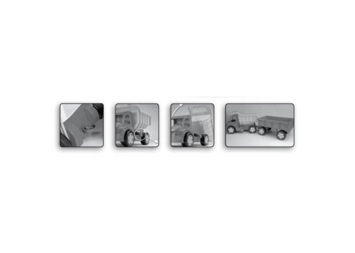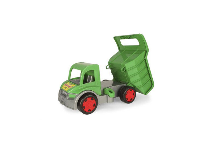 Іграшкова вантажівка "Гігант" - надзвичайно великий автомобіль довжиною 55 см. Машинка спереду має отвір для кріплення мотузки, шнурка тощо, за допомогою яких дитина може її тягнути. А також є можливість ззаду вчепити причеп. Вантажівка має відкритий кузов, який можна відкринути назад, а положення кузова фіксується спеціальним фіксатором. Діти будуть у захваті від процесу завантаження, розвантаження і перевезення улюблених іграшок, а також від їзди по дому і саду. Найменші можуть самостійно їздити, сидячи в кузові автомобіля і відштовхуючись ніжками. Величезна вантажопідйомність (до 150 кг) гарантує дитині цікаву гру як на одинці, так і у компанії друзів чи батьків. Велика, міцна і багатофункціональна машина обов’язково сподобається маленьким автолюбителям і вона служитиме їм роками. Ігри вантажівкою гігантом розвивають уяву найменших дітей, підтримує їх мануальні здібності і рухову координацію дитини. Всі елементи виготовлені з високоякісних безпечних матеріалів для дітей.