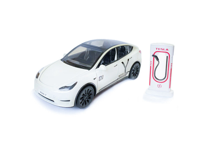 Машинка металева Tesla Model Y Electrocar 1:24 зарядна станція звук світло відч двері капот багажник гум колеса 18х6х8см
