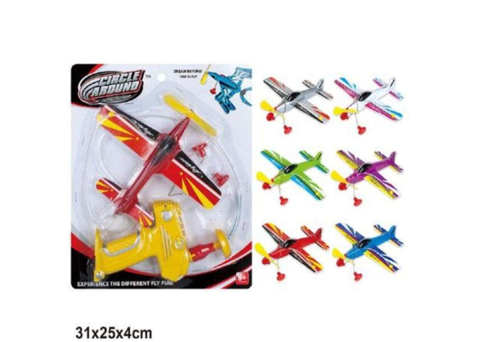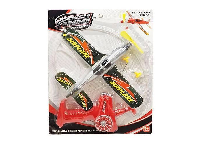 Літак з запуском. Запускаючий механізм на батарейках, запускаэться за допомогою пружинного механізму з'єднється шнурочком з літаком.