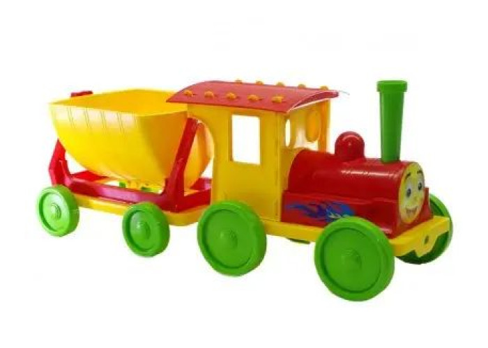 Іграшковий потяг-конструктор для пісочниці чудовий подарунок малюкові, який хоче покерувати потягом. Причіп можна відчепити. Ківш у причепі може перевертатися, для зручного транспортування і вивантаження бідь-якого вантажу.