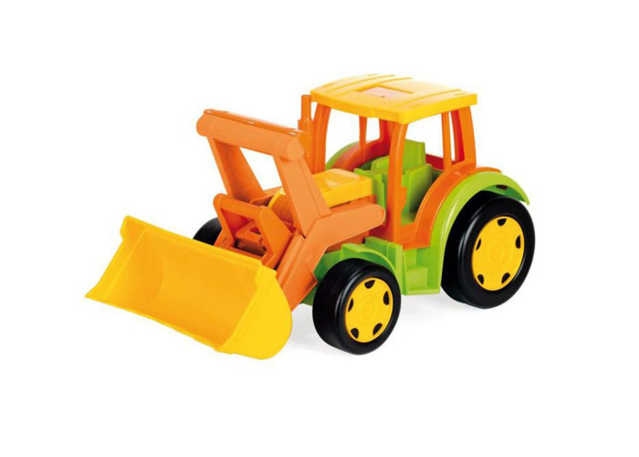 Великий, міцний трактор - навантажувач довжиною 60 см має дуже реалістичний вигляд. Стане чудовою іграшкою навіть для найменших дітей. Рухомий ківш трактора може підніматися і опускатися, а також повертатися в потрібне положення, завдяки чому грати стає ще більш пізнавально, цікаво і корисно. За допомогою ковша дитина може будувати, завантажувати, розвантажувати і транспортувати різні речі. Трактор вирізняється солідністю виконання, стійкістю і витривалістю конструкції. Іграшку можна не тільки возити, а й їздити на ній. Це дитина може робити самостійно, відштовхуючись ніжками, або її може везти хтось з батьків, попередньо прив'язавши до машинки шнурок. Тримаючись за зручну ручку, дитина буде відчувати себе в безпеці під час катання. Його максимальна вантажопідйомність 100 кг. Всі елементи виготовлені з високоякісних, безпечних і нетоксичних матеріалів, стійких до будь-якої погоди. Завдяки цьому діти можуть ним гратись як у домі, так і у дворі, на терасі чи у саду. Ігри трактором створюють додаткові можливості для рухової активності, підтримують моторний розвиток дитини, а також розвивають його уяву і креативність.
