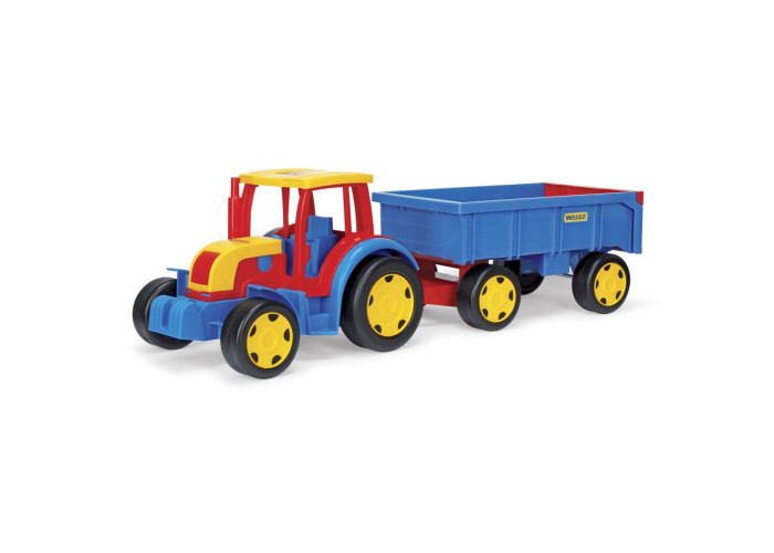 - кольоровий трактор з причепом, загальною довжиною 117 см