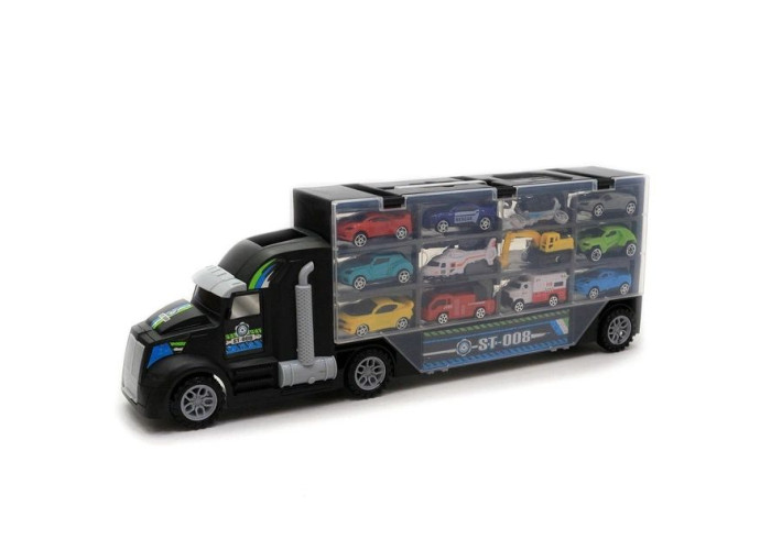 Сама вантажівка виготовлена з якісного міцного пластику і дуже зручна для зберігання та перевезення таких моделей транспорту.