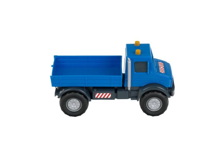 Міцна та багатофункціональна машинка створена для справжніх будівельних ігор. Вона відтворює реальний самоскид Mercedes-Benz Unimog, який використовується на будівництві та в дорожніх роботах.