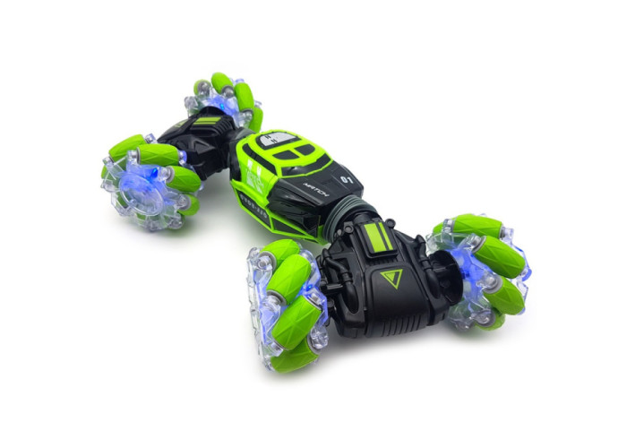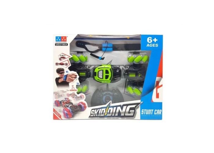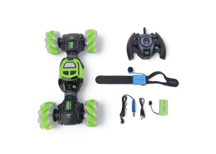 Даною машинкою можна керувати жестами за допомогою спеціального браслета, який входить в комплект з машинкою Hyper Skidding. Захоплюючий процес управління сподобається не тільки дітям, а й дорослим . І все це супроводжуватиметься звуками працюючого мотора, яскравим підсвічуванням коліс та піснями. Особливо ефектно машинка виглядає у темряві. У комплект поставки входять два пульти управління, один стандартний, другий браслет, акумулятор і два зарядні пристрої.