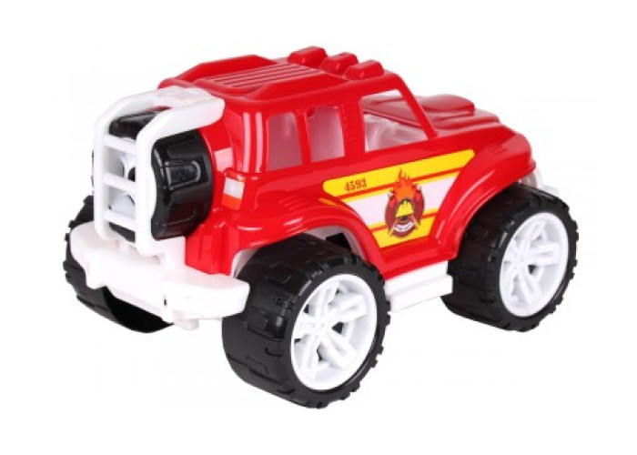 Саме для шанувальників великих джипів пропонуємо позашляховик ТехноК - типовий "ALLROAD" з запасним колесом, прикріпленим до задніх дверей. На машині великі колеса з яскравим протектором, що легко долають різні перешкоди. У салоні авто можна розмістити невеликі іграшки та взяти їх з собою у подорож. Цікавий динамічний дизайн позашляховика неодмінно приверне увагу дітвори до іграшки. Кольорова гама та яскраві наліпки додають грі особливого драйву – так малюки уявляють себе супер героями.