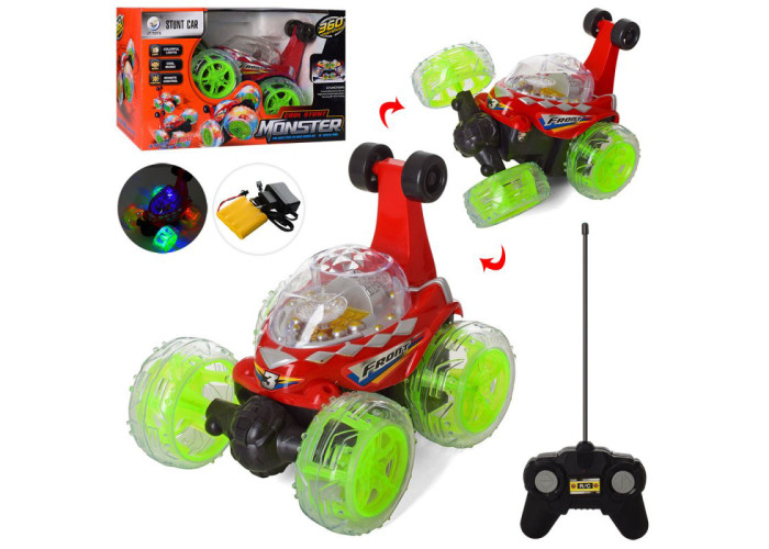 Ця машинка – справжня циркачка, і вміє робити цікавий трюки! Машина-перевертиш на радіокеруванні — ця проноза знайде вихід з будь-якої, навіть найскладнішої ситуації. Цей луноход може робити більше 100 різних трюків, тому діти ніколи не занудьгують!!!! Він може пройти будь-яку поверхню — килим, бруд, ями і траву, Ви можете направляти його у будь-яку сторону, яку захочете — він ніколи не застрягне. Може рухатися вперед, назад, вправо, вліво, перевертатися. Обертається вісь передніх коліс на 360 градусів. Світяться різними кольорами (блимають) колеса й корпус машини. Габарити машини: довжина 20 см, ширина 16 см, висота 16 см Для дітей від 2 років