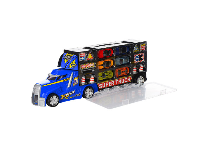 Трейлер контейнер з відсіками для машин. Машинки-це одні з улюблених іграшок як для хлопчиків, так і для дівчаток. За допомогою ігрових машмінів дитина зможе придумати безліч ігор. Машинки зручно брати із собою на прогулянку, пластикова основа дозволяє мити машинку у воді, грати у пісочниці тощо.