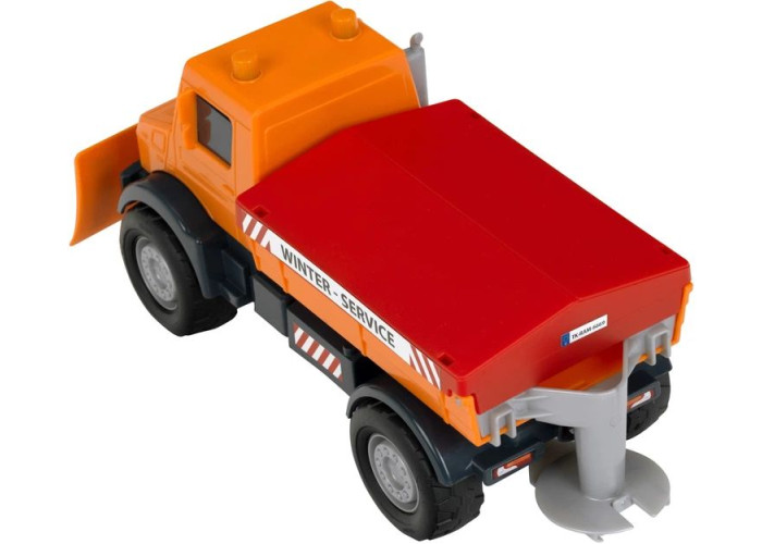 Надійна та функціональна машинка створена для зимових пригод. Завдяки реалістичному дизайну вона відтворює справжню снігоочисну техніку Mercedes-Benz Unimog, що працює на дорогах у зимовий період.