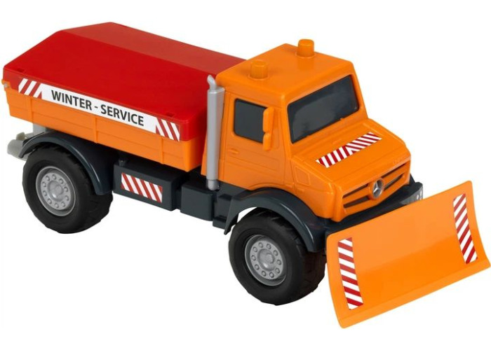 Надійна та функціональна машинка створена для зимових пригод. Завдяки реалістичному дизайну вона відтворює справжню снігоочисну техніку Mercedes-Benz Unimog, що працює на дорогах у зимовий період.