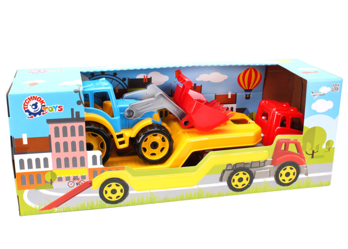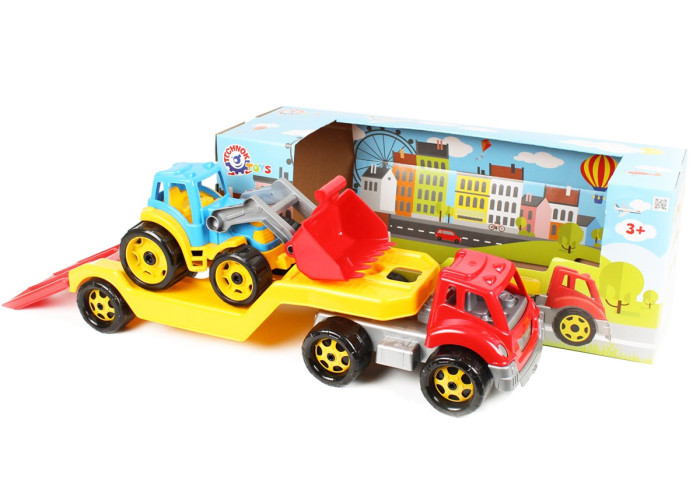 Автовоз - це спеціалізований вантажний автомобіль, спеціально розроблений для перевезення автомобілів. Даний автовоз перевозить трактори. Дитині буде цікаво гратися цією іграшкою в пісочниці. За допомогою автовоза можна доставляти трактори на будмайданчики для будівництва різних пісочних конструкцій. Трактори легко заїжджають на причіп. Граючи з цим набором, дитина розвиває логіку і фантазію і набагато швидше запам ятовує кольори.