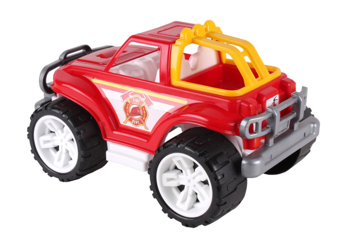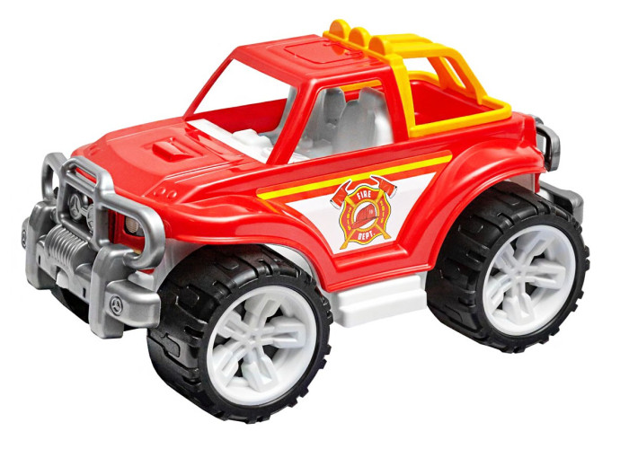 Саме для шанувальників джипів пропонуємо іграшковий спортивний позашляховик з відкритим кузовом та масивними бамперами-«кенгурятниками». На машині великі колеса з яскравим протектором, що легко долають різні перешкоди. У салоні авто можна розмістити невеликі іграшки та взяти їх з собою у подорож. Цікавий динамічний дизайн позашляховика неодмінно приверне увагу дітвори до іграшки. Кольорова гама та яскраві наліпки додають грі особливого драйву – так діти уявляють себе супер героями.