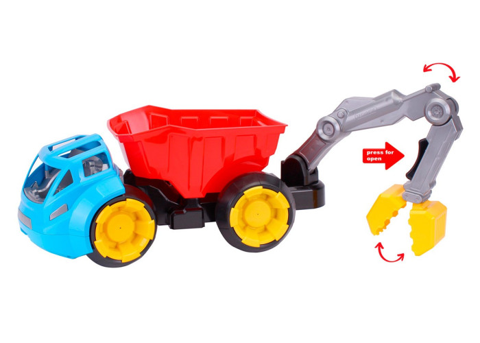 Об'єм кузова становить 3.0 дм3 і в ньому зручно перевозити пісок та каміння. Бокове вивантаження дозволяє використовувати іграшку на обмежених майданчиках.