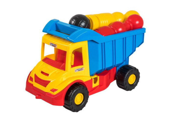 Яскрава, цікава, зручна і безпечна для дітей іграшкова вантажівка підходить як для гри вдома, так і на відкритому повітрі. Машинка оснащена рухомим кузовом і фіксатором закритого положення. У передній частині вантажівки розташована петля для кріплення шнурка.