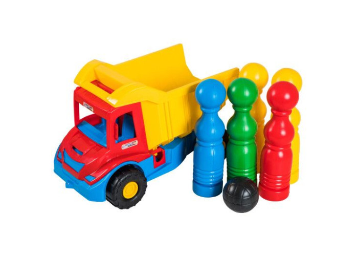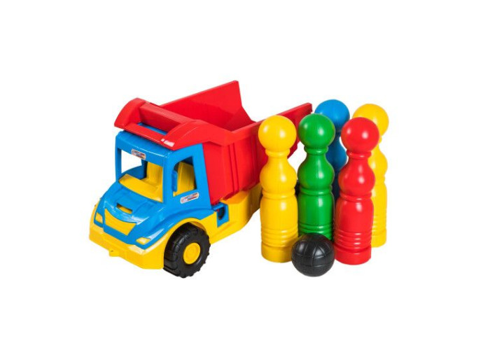Ця яскрава іграшкова вантажівка Multi Truck з кеглями від Тигрес - чудовий ігровий набір, який включає в себе і машинку, і дитячі кеглі з кулею для гри в боулінг.